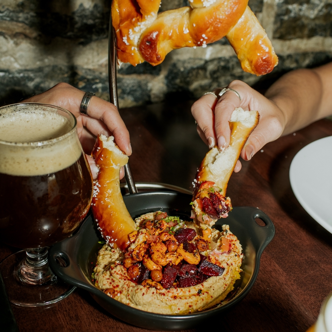Served with Salsa Macha, Hummus, beer-Beer-Caramelized Cashews, Pico de Gallo, Pickled Beets